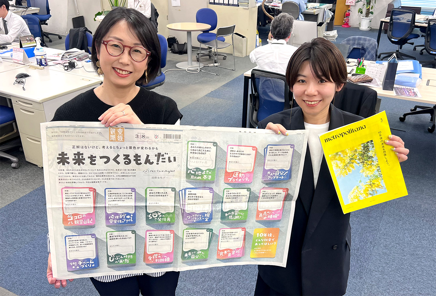 女性のココロとカラダのケアを起点に、誰もが生きやすい社会の実現を目指す産経新聞社の「フェムケアプロジェクト」。2021年秋から始まった産経新聞社の媒体横断型の取り組みは男女双方にある特有の健康課題に注目し、活動を深化させてきました。「国際女性デー」に実施した新聞を丸ごと包むラッピング広告などの一連の活動が評価され日本新聞協会「新聞広告賞」の2年連続受賞にも至っています。担当者のメディアビジネス本部、日下紗代子・フェムケアプロジェクトディレクターと、編集局文化部・デジタル報道部で、フェムケアプロジェクトを担当する篠原那美記者に話を聞きました。